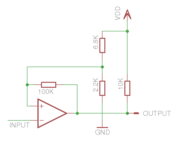 Some more research and experimenting resulted in a circuit which uses a comparator (LM339) with feedback. This produces a nice “black and white” digital output. A very good explanation of the basics can be found in this blog.