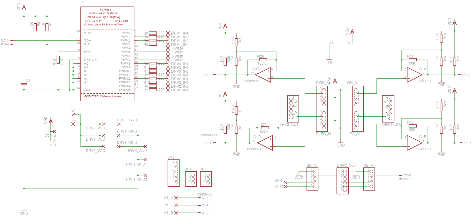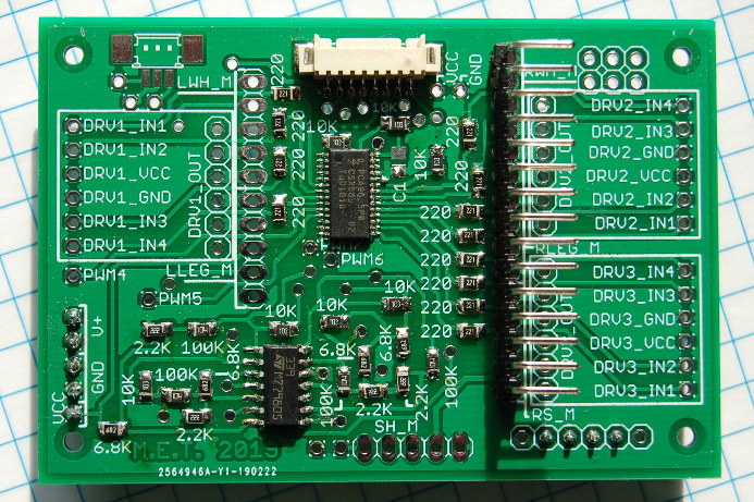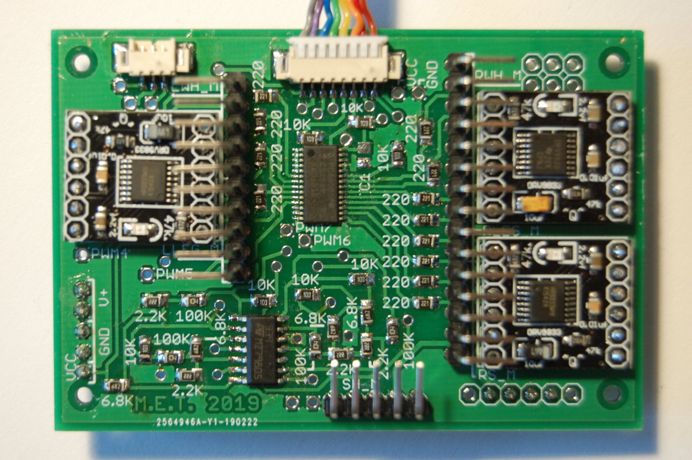 This year we only have two DC motors so far: these can be controlled by only two PWM channels, so this doesn’t really require a dedicated component. Still, it seems like a good idea to use a proven solution with a lot of room for adding more motors (we have a few secret plans…) – and we always need a bit of over-engineering!