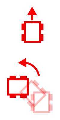 We have another problem with turn_left() and turn_right(): if these simply set different power values to the left/right motors, the robot would start to turn – and then keep turning. That deceptively simple turn right line in our original pseudo-code really means “turn right 90 degrees”. The implementation of this is actually something like “apply correct power to left/right motors to start turning, wait until we reached 90 degrees from where we started (maybe determined by using a compass), then stop”. So something like this:
