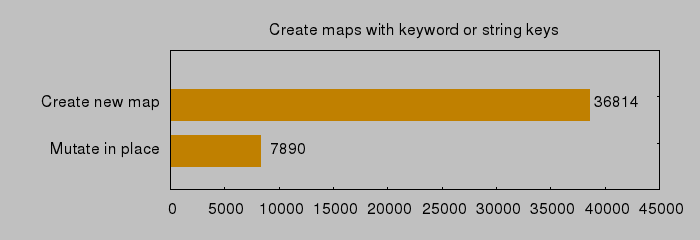 Just as a quick example, for a relatively simple function that updates some values in a map following some rules and either returns the result as a new map or mutates the original: