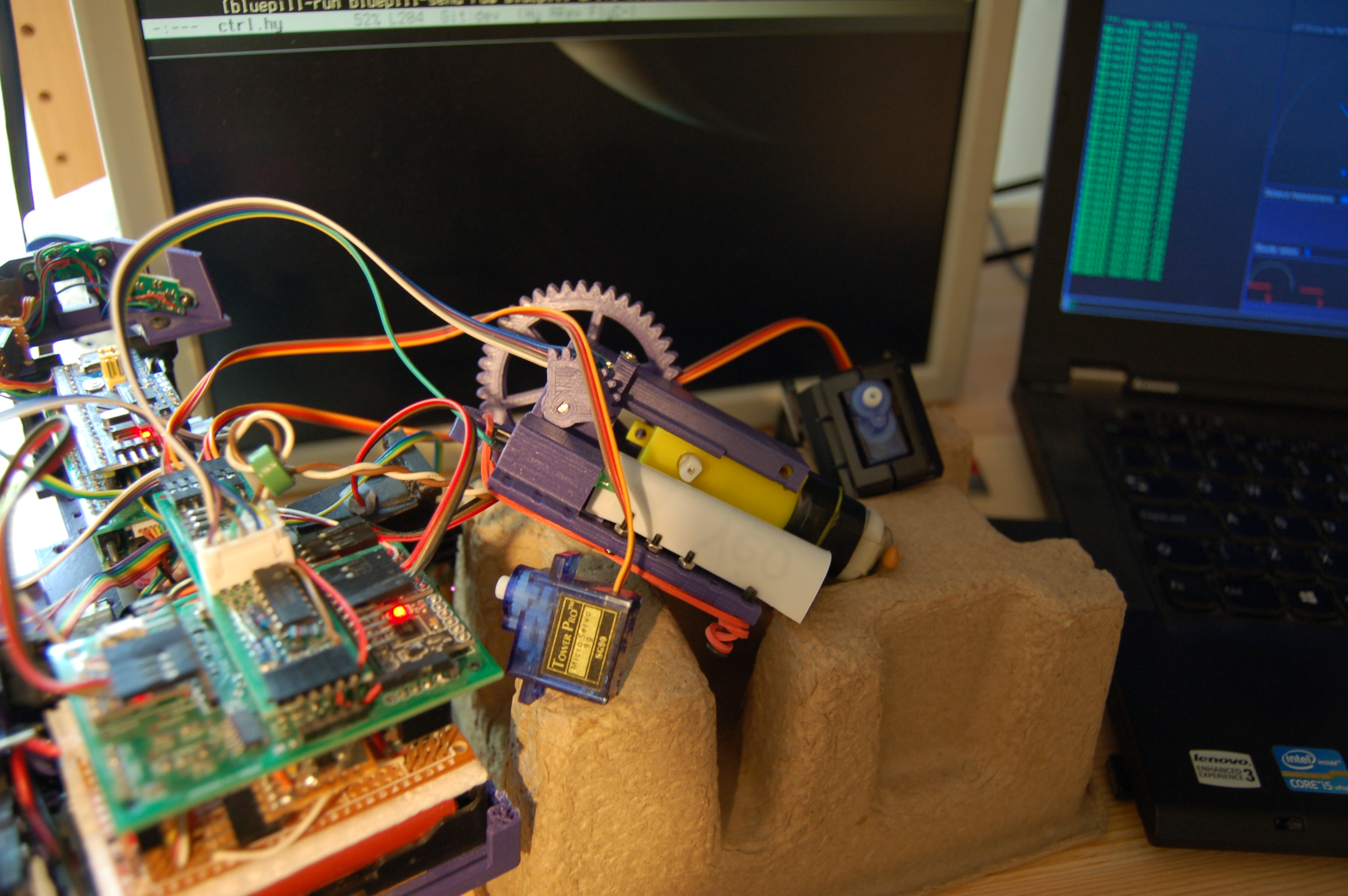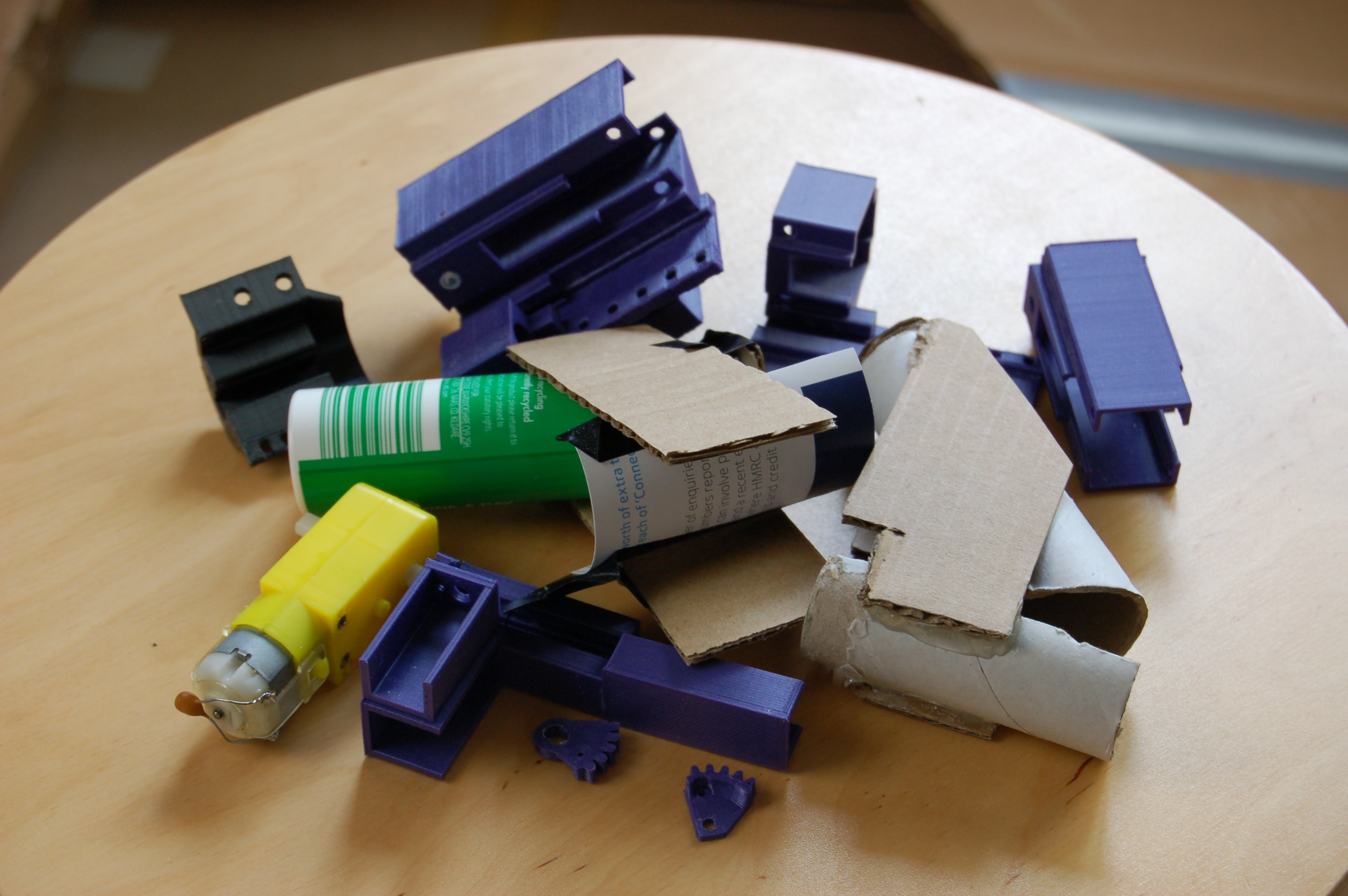 We also had to experiment quite a lot with finding the right kind of motor and gear ratio. (In hindsight, using a worm gear to slow down our motor – or even better, using the same motor with a different gearbox would have been better than adding the “giant” reduction gear.)