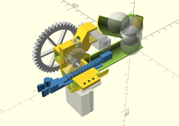 The angles, the size of the opening between the two tubes, the distance from the rack are of course all critical. Everything has to be just right to avoid feeding more than one ball, balls getting stuck, or not reloading at all! This took a lot of prototyping and trial and error…