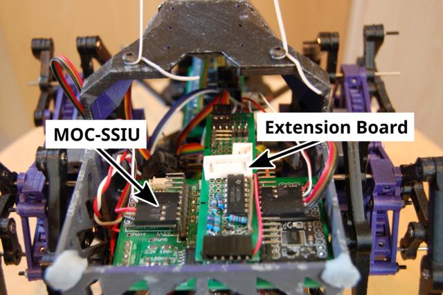 MOC-SSIU Extension Board: a late addition to support the shooter and claw attachments (mainly to route connections between components).